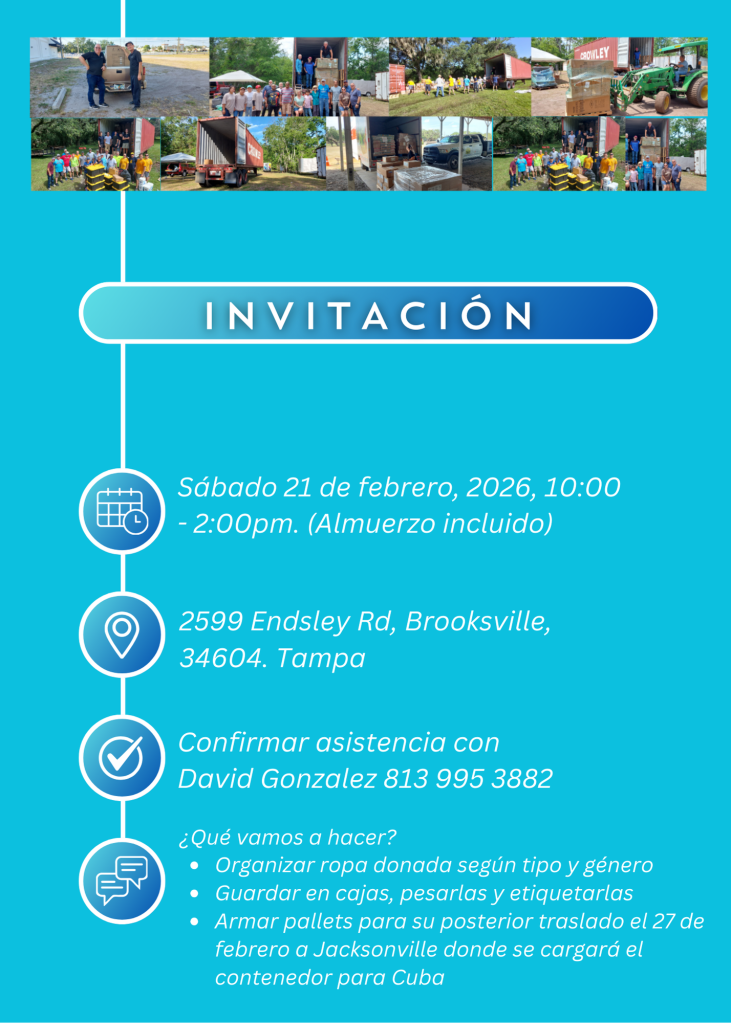 El reciente sábado 17 cargamos un contenedor destinado a la Convención Bautista de Cuba Oriental con ayuda para las iglesias y hermanos que fueron afectados por el Huracán Melissa en octubre del 2025.